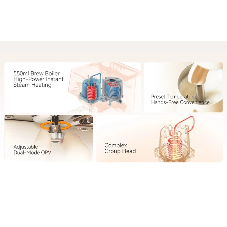 Za stabilność temperatury odpowiada cyfrowy regulator PID, który umożliwia ustawienie temperatury w zakresie 85 - 102°C, a regulowana preinfuzja oraz programowalny czas parzenia do 30 sekund pozwalają idealnie dopasować parametry do rodzaju kawy i stopnia palenia. Włoski elektrozawór automatycznie odprowadza nadmiar ciśnienia po zaparzaniu kawy, dzięki czemu fusy są suche, a ekspres łatwiejszy w czyszczeniu.