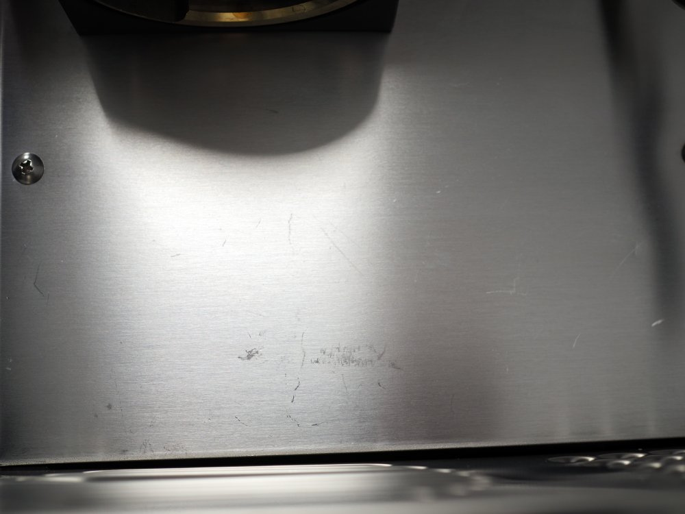 Ekspres posiada znaczne rysy widoczne na zdjęciach na następujących elementach: krata tacy ociekowej, front obudowy nad tacą ociekową.