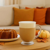 Wykonana z wysokiej jakości szkła, szklanka wyróżnia się trwałością oraz odpornością na zarysowania. Grube ścianki pomagają dłużej utrzymać temperaturę napoju, a stabilna stopka zapewnia komfort i bezpieczeństwo użytkowania. Duża pojemność 500 ml sprawia, że idealnie nadaje się do kawy latte, herbaty, gorącej czekolady, deserów, a także zimnych napojów.