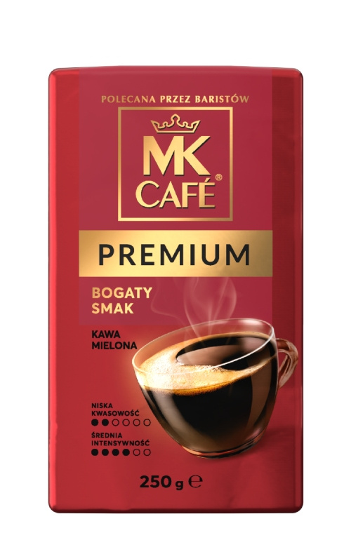 MK Cafe Premium to połączenie najlepszych cech ziaren kawy pochodzących z trzech kontynentów - Ameryki Południowej, Azji i Afryki. Ta harmonijna kompozycja jest zasługą wiedzy i doświadczenia baristów i znawców kawy. Kawa mielona MK Cafe Premium jest odpowiednia zarówno do ekspresu, jak i do tradycyjnej metody parzenia.