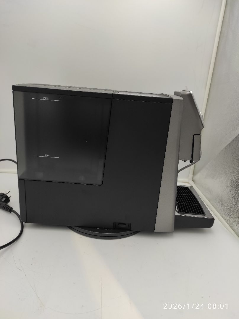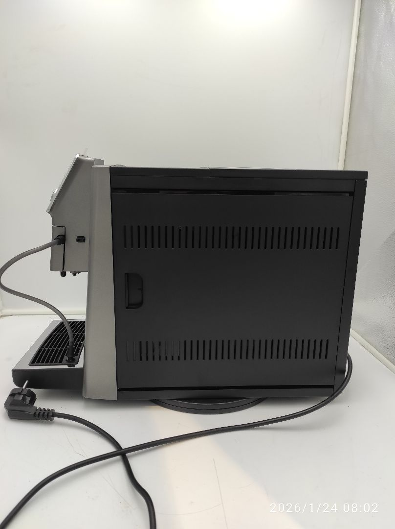 Urządzenie 100% sprawne, objęte gwarancją producenta oraz 14-dniowym prawem odstąpienia od umowy zawartej na odległość. Zamieszczone w galerii fotografie przedstawiają oferowany produkt. Ekspres posiada kompletne i oryginalne wyposażenie zawarte w opisie towaru. Urządzenie przygotowało około 7 kaw testowych, nie posiada śladów użytkowania, jedynym mankamentem produktu są niewielkie rysy na dolnej części zbiornika wody przedstawione na zdjęciu. Urządzenie posiada fabryczną naklejkę zabezpieczającą na wyświetlaczu.