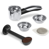 Obsługa ekspresu jest niezwykle prosta. Przekręć pokrętło lub naciśnij przycisk i ciesz się swoim ulubionym napojem. W opakowaniu ekspresu znajdują się filtry do przygotowania jednej oraz dwóch filiżanek kawy. Wybierz odpowiedni filtr i przygotuj nawet dwie filiżanki espresso jednocześnie, nie tracąc przy tym w żaden sposób na jakości i smaku. Filtry De’Longhi mają podwójne dno, co gwarantuje uzyskanie doskonałego aromatu oraz bogatej złocisto-orzechowej cremy. Filtr pasuje do saszetek ESE. Ciśnienie 15 bar zapewnia optymalną ekstrakcję kawy.