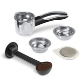 Obsługa ekspresu jest niezwykle prosta. Przekręć pokrętło lub naciśnij przycisk i ciesz się swoim ulubionym napojem. W opakowaniu ekspresu znajdują się filtry do przygotowania jednej oraz dwóch filiżanek kawy. Wybierz odpowiedni filtr i przygotuj nawet dwie filiżanki espresso jednocześnie, nie tracąc przy tym w żaden sposób na jakości i smaku. Filtry De’Longhi mają podwójne dno, co gwarantuje uzyskanie doskonałego aromatu oraz bogatej złocisto-orzechowej cremy. Filtr pasuje do saszetek ESE. Ciśnienie 15 bar zapewnia optymalną ekstrakcję kawy.