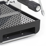 W zestawie z ekspresem znajduje się: portafilter z podwójną wylewką, sitko na pojedynczą kawę (7-9 g), sitko na podwójną kawę (14-18 g), sitko na saszetki ESE, tamper oraz łyżka do kawy mielonej.