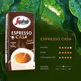 Segafredo to znana na całym świecie włoska palarnia kawy. Espresso Casa jest mieszanką najlepszych ziaren arabiki i robusty. Jest doceniana przez wielu ekspertów i smakoszy włoskiej kawy. Kawa ziarnista Segafredo Espresso Casa dzięki dużej zawartości robusty posiada wysoki poziom kofeiny. Czyni to kawę idealnym sposobem na poranne przebudzenie.