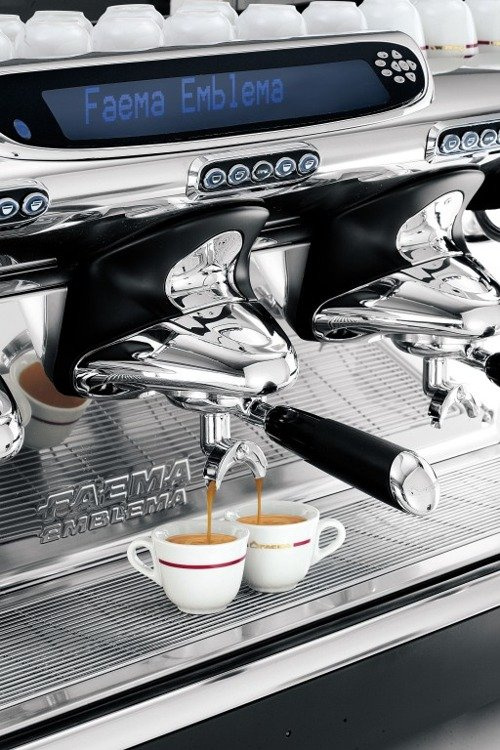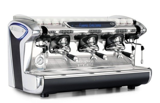 Faema Emlbema jest również dostępna w wersji z dwoma grupami oraz w tańszej, półautomatycznej.