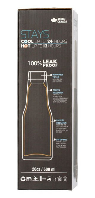 Niezwykle stylowa butelka termiczna kanadyjskiej marki Asobu wykonana z wysokiej jakości stali nierdzewnej, która jest odporna na różnego rodzaju uszkodzenia. Wśród największych zalet butelki Asobu możemy wymienić niezwykłą elegancję oraz wysoką funkcjonalność. Te cechy sprawiają, że produkty Asobu są uwielbiane na całym świecie.