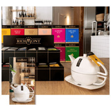 W zestawie znajdziemy także aż 12 opakowań herbat Richmont różnych smaków. Jedno opakowanie zawiera 50 saszetek z wysokiej jakością herbatą, więc w dużym pakiecie otrzymujemy 600 saszetek z herbatą Richmont w firmowych opakowaniach.