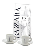 - Dwie porcelanowe filiżanki Bazzara o pojemności 70 ml przeznaczone do kawy espresso.