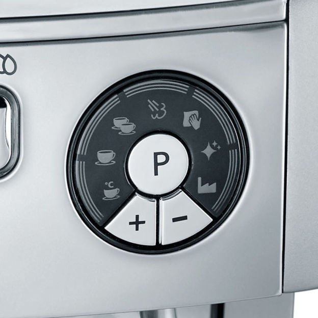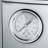 Wbudowany manometr znajdujący się po lewej stronie panelu pokazuje zawsze aktualne ciśnienie panujące podczas procesu parzenia, dzięki czemu możemy śledzić szczelność i drożność układu ciśnieniowego, przygotowując kawę. Zmielona kawa przechodzi proces pre infuzji, czyli jest delikatnie nawilżana tuż przed właściwą ekstrakcją. Pozwala to uzyskać pożądany efekt w postaci doskonałego espresso.