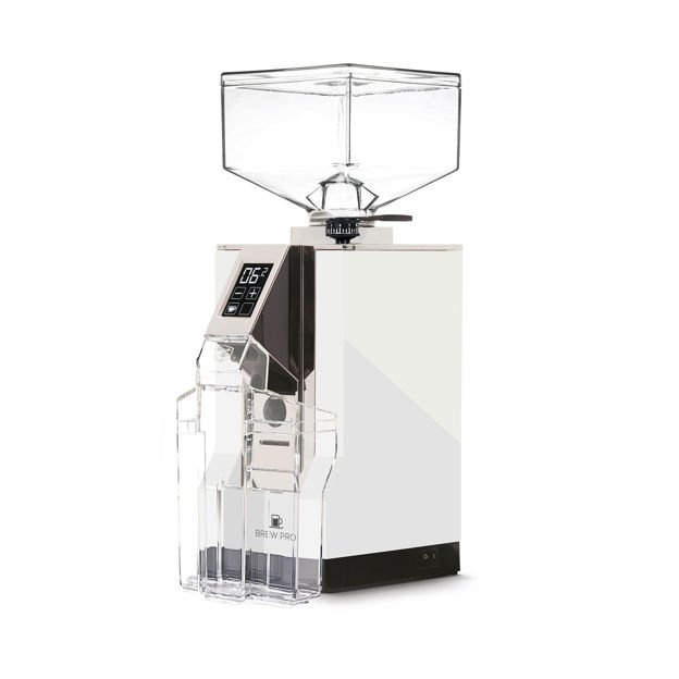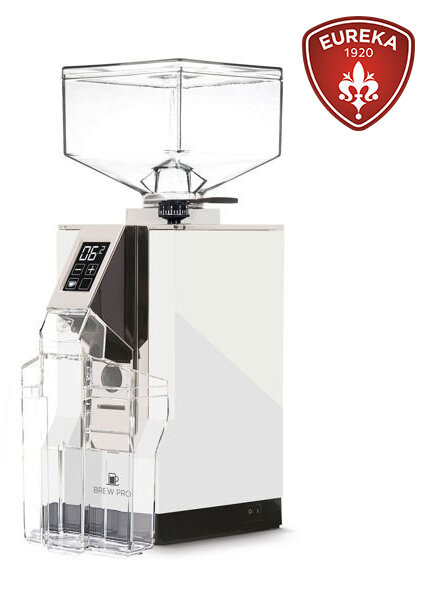 Eureka Mignon Brew Pro w kolorze białym to włoskiej produkcji automatyczny młynek do kawy marki Eureka. Jest to bardzo zaawansowany technicznie młynek przeznaczony do mielenia kawy pod alternatywne metody parzenia i przystosowany do pracy w domu. Eureka Mignon Brew Pro to automatyczny młynek do kawy, który spełni oczekiwania użytkowników takich zaparzaczy, jak Chemex, drip, Aeropress oraz ekspres przelewowy. Młynek Eureka Mignon Brew Pro to wyjątkowo solidna obudowa i elegancki design. Aluminiowa obudowa w kolorze białym jest odporna na uszkodzenia i świetnie prezentuje się w domowych kuchniach.