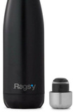 Wielokrotnego użytku butelka na wodę marki Rags'y w kolorze Black Olive. Butelki termiczne Rags'y posiadają podwójną ściankę próżniową, która zapewnia izolację termiczną, dlatego mogą być wykorzystywane jako stylowy termos. Trójwarstwowa technologia zapobiega kondensacji na powierzchni zewnętrznej butelki, dzięki czemu butelka nie staje się wilgotna. W butelkach Rags'y możemy przechowywać zarówno gorące, jak i zimne napoje bez ryzyka poparzenia dłoni, ponieważ zewnętrzna powłoka butelki zawsze zachowuje temperaturę pokojową. Temperatura gorących napojów w butelce Rags'y Black Olive zostaje utrzymana do 12 godzin, a zimnych do 24 godzin.