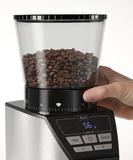Automatyczny młynek do kawy Melitta Calibra posiada hopper o pojemności 375 g oraz pojemnik na zmieloną kawę, który pomieści do 200 g kawy. Pod wysypem kawy z łatwością możemy zmieścić drip Melitta z filtrem 1x4, a także zmielimy kawę bezpośrednio do koby ekspresu.
