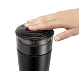 Obsługa młynka do kawy De'Longhi KG 200 jest bardzo prosta. Po wsypaniu do zbiornika kawy ziarnistej wystarczy jedynie dotknąć pokrywkę. System Push to grind sprawia, że proces mielenia uruchamiamy i wyłączamy za pomocą jednego dotknięcia.