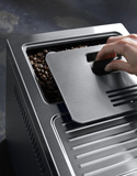 Aby kawowe chwile były doskonałe pod każdym względem, De'Longhi zadbało także o wygodę użytkowania układu mlecznego, dlatego system LatteCrema spieniając mleko, wykorzystuje jedynie taką jego ilość, która jest potrzebna do przygotowania mlecznej pianki, zatrzymując niewykorzystaną część w dzbanku. Może on być przechowywany w lodówce, dzięki czemu mleko będzie zawsze świeże i odpowiednio schłodzone. Aby ułatwić utrzymanie w czystości systemu mlecznego, karafka jest wyposażona w funkcję automatycznego czyszczenia zintegrowaną w pokrętle regulacji piany. Funkcja ta aktywuje cykl płukania wodą oraz strumień pary, czyszcząc wszystkie elementy wykorzystywane do przygotowania mleka. Karafkę możemy w łatwy sposób rozłożyć, a wszystkie części pojemnika na mleko można myć w zmywarce, oszczędzając czas.