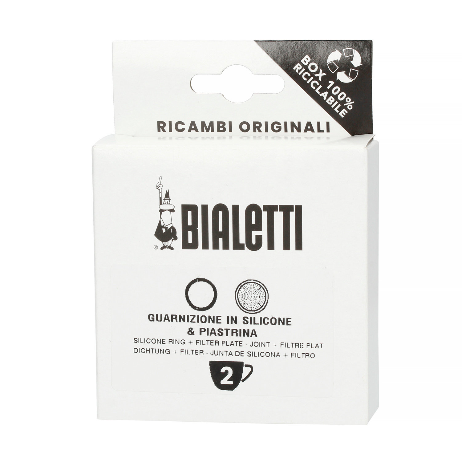 Wymienna uszczelka do aluminiowych kawiarek Bialetti Mukka 2 filiżanki. W zestawie znajduje się 1 uszczelka do kawiarki oraz zamienne sitko.