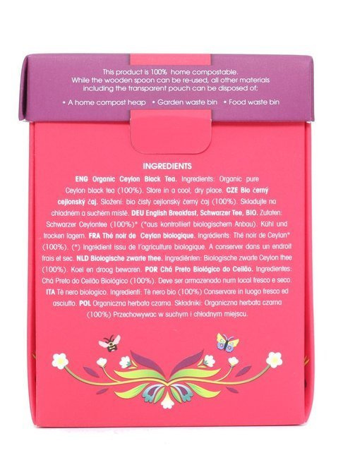 English Tea Shop English Breakfast to najwyższej jakości całoliściasta mieszanka czarnych herbat Assam i Ceylon. Herbaciarnia English Tea Shop stawia na liście i pąki, które pochodzą wyłącznie z upraw ekologicznych z certyfikatem Fair Trade. Przygotowana z suszu herbata to idealnie zbalansowany smak.