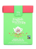 English Tea Shop Green Tea&Pomeragnate to doskonała zielona herbata pochodząca z Chin i Sri Lanki. W pełni organiczna, została wzbogacona m.in. kawałkami granatu, który nadaje jej wyjątkowy charakter