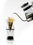 - Papierowy filtr umieść w chemeksie i przelej przez niego gorącą wodę, a następnie wylej ją z zaparzacza.