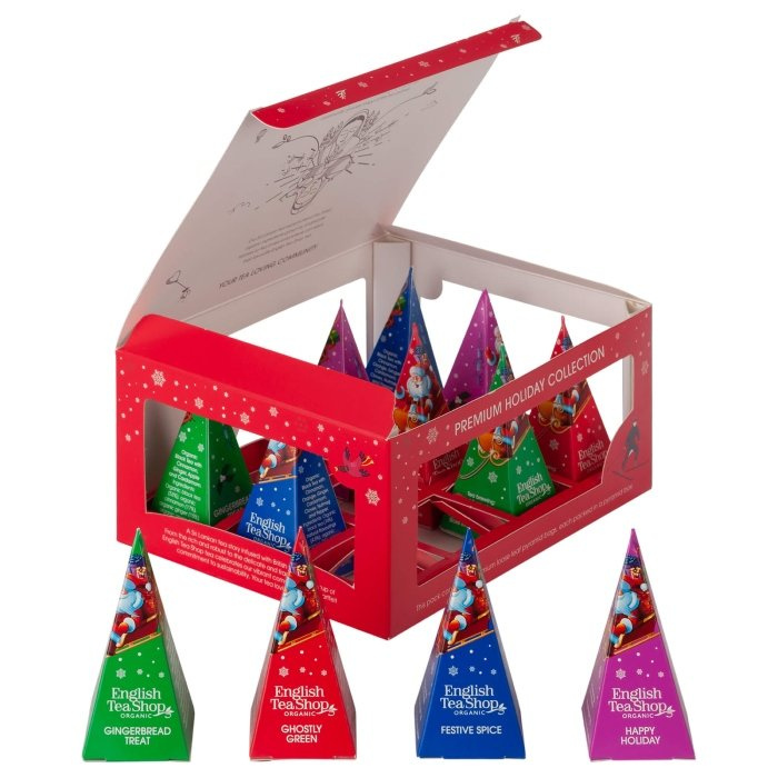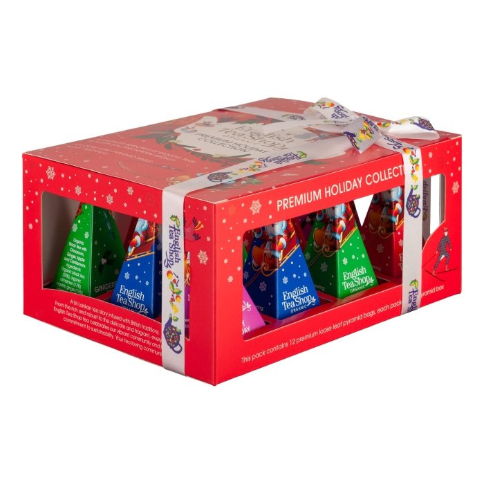 English Tea Shop Red Prism to zestaw prezentowy zawierający świąteczne herbaty w piramidkach. Eleganckie opakowanie zawiera 12 saszetek z herbatą w 4 smakach. Każda z nich jest mieszanką organicznej herbaty czarnej i zielonej z ziołami, przyprawami i owocami. Kolekcja herbat English Tea Shop Red Prism rozbudzi w nas świąteczną atmosferę i świetnie sprawdzi się jako prezent dla bliskiej osoby.