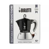Bialetti New Moka Induction 2tz to wykonana w nowoczesnym stylu, odświeżona wersja klasycznego modelu kawiarki Moka Induction, która posiada grubszą ściankę dolnego zbiornika. Kawiarka jest wykonana z aluminium i stali nierdzewnej, a tradycyjne kształty doskonale nawiązują do pierwotnych włoskich kawiarek. Dodatkowo idealnie nadaje się na prezent dla bliskiej osoby. W czarnej kawiarce Bialetti New Moka Induction 2tz w łatwy i szybki sposób można zaparzyć dwie filiżanki kawy zbliżonej do włoskiego espresso.