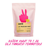 To Kwiat, który pomaga - dzięki każdej sprzedanej paczce HAYB przekazuje złotówkę na działania statutowe Fundacji Feminoteka.
