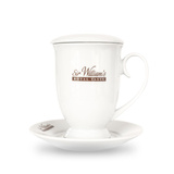 Porcelanowy kubek, który doskonale posłuży jako prezent dla miłośnika herbacianych naparów. Kubek z logo Sir William's Royal Taste posiada spodek oraz wieczko, które na dłużej utrzymuje temperaturę zaparzonej w nim herbaty. Elegancki kubek do herbaty o pojemności 400 ml sprawdzi się w każdym domu, ale również z powodzeniem możemy go wręczyć bliskiej osobie jako prezent.
