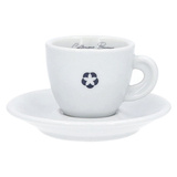 Biała filiżanka z logo Bazzara i biała podstawka są wykonane z grubej, wysokiej jakości porcelany, która doskonale zachowuje ciepło i ma delikatnie wykończone krawędzie. Filiżanka ma uchwyt, który ułatwia trzymanie filiżanki. Wnętrze filiżanki ozdabia delikatny napis Colezzione Bazzara.