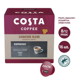 Costa Coffee Signature Blend Espresso jest mieszanką arabiki i robusty, która powstała na samym początku istnienia firmy, gdy bracia Costa szukali doskonałego smaku kawy. Po 112 próbach udało się stworzyć Signature Blend. Costa Coffee Home Edition to oferta skierowana do miłośników kawiarnianych specjałów, które możemy teraz przygotować bez wychodzenia z domu. Costa Coffee Signature Blend Espresso to kawa w kapsułkach kompatybilna z ekspresami Nescafè® Dolce Gusto®*, którą możemy przygotować wyłącznie w ekspresach kapsułkowych Dolce Gusto. Opakowanie zawiera 16 kapsułek z kawą.