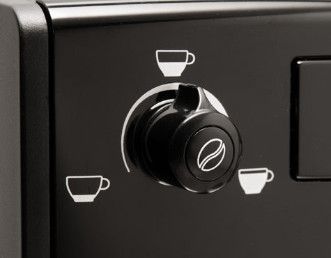 Łagodna, czy raczej mocna? Za pomocą tego przełącznika można wybrać ilość wody na jedną filiżankę kawy, a naciskając przycisk można ustawić indywidualnie dobraną moc aromatu.