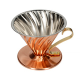 W Dripie V60-02 można zaparzyć jednorazowo od 300 do 500 ml kawy. Drip został wykonany z miedzi i posiada mosiężną rączkę oraz wewnętrzne wyżłobienia zapewniające idealny przepływ wody. Do dripa V60-02 pasują papierowe filtry w rozmiarze V60-02. Metalowy drip może być myty pod bieżącą wodą oraz w zmywarce.