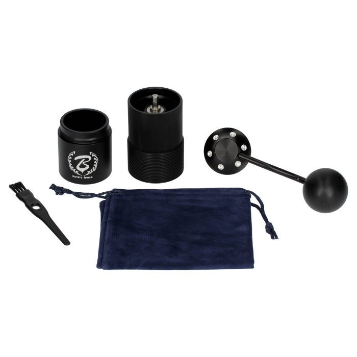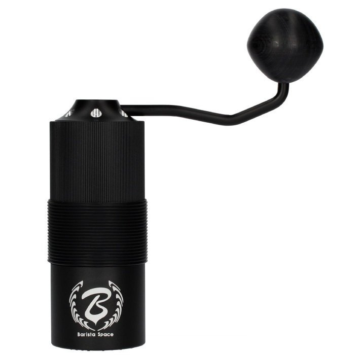 Ręczny młynek do kawy Barista Space w kolorze czarnym, to urządzenie przeznaczone do użytku domowego, z którym przygotujemy idealny przemiał pod różne metody parzenia kawy. Czarny młynek posiada korpus wykonany z aluminium, gumową opaskę oraz drewniany uchwyt rączki. Żarna zaś zostały wykonane ze stali nierdzewnej, dzięki czemu kawa mielona jest równo i precyzyjnie.