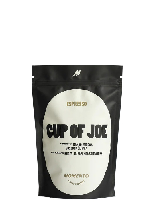 Momento Coffee Cup of Joe to 100% brazylijska arabika Single Origin. Tworzą ją ziarna odmiany Yellow Bourbon, które rosną na wysokościach 1150 m n.p.m. w regionie Minas Gerais. Ziarna zostały poddane obróbce natural i wypalone w stopniu średnim, co sprawia, że Momento Coffee Cup of Joe doskonale sprawdzi się do przygotowania w ciśnieniowym ekspresie do kawy.