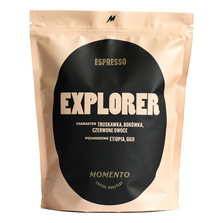 Momento Coffee Explorer to średnio palona arabika jakości specialty z Etiopii przeznaczona do ekspresów i kawiarek. Jej ziarna odmian JARC 74158 i G1 uprawiane są na wysokości 2100 m n.p.m. w regionie Guji na farmie Damo Washing Station. Kawa została poddana obróbce metodą natural, a w teście jakości uzyskała 87,5 punktów.