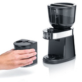 Obsługa młynka jest bardzo prosta i poradzi z nią sobie każdy początkujący użytkownik. Kawę ziarnistą należy wsypać do górnego zbiornika, a po wciśnięciu przycisku Start zmielona kawa zostanie przesypana do wprost do pojemnika. Funkcja bezpieczeństwa nie pozwala uruchomić młynka, gdy zbiornik na kawę ziarnistą oraz pojemnik na zmieloną kawę nie są zamontowane prawidłowo.
