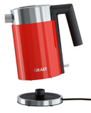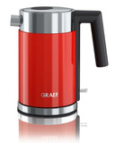 Wysokiej jakości czajnik elektryczny firmy Graef w kolorze czerwonym. Czajnik posiada podwójne ścianki, bezpiecznik termiczny oraz wymienny filtr wapnia. Wewnętrzny zbiornik oraz filtr zostały wykonane ze stali nierdzewnej, a obudowa to połączenie czerwonego tworzywa sztucznego oraz stali nierdzewnej. Czajnik Graef WK 403 pomieści 1 l wody i po zagotowaniu wody automatycznie się wyłącza.
