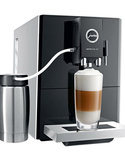 Dzięki funkcji One Touch ekspres Jura Impressa A5 potrafi przygotować kawę latte lub cappuccino po naciśnięciu jednego przycisku, bez konieczności przesuwania filiżanki. Ekspres JURA Impressa A5 One Touch wyposażony został w przystawkę Easy wbudowaną w środkową wylewkę kawy. Jeśli chcesz spienić mleko wystarczy, że podłączysz jeden koniec wężyka do przystawki, a drugi zanurzysz w dowolnym pojemniku z mlekiem np. karton z mlekiem. Ekspres sam pobiera, spienia i podgrzewa mleko bezpośrednio do filiżanki, którą umieścimy pod wylewką, a następnie z pod tej samej wylewki zostanie wylana porcja kawy espresso.
