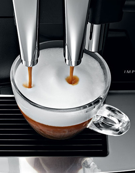 Dzięki ekspresowi JURA Impressa F8 możesz cieszyć się modnymi specjałami kawowymi (latte, cappuccino) bez konieczności przesuwania filiżanki - po prostu ustaw przełącznik w odpowiednim położeniu, a delikatna pianka mleczna o idealnej konsystencji spłynie do filiżanki przed kawą, tworząc klasyczne cappuccino.