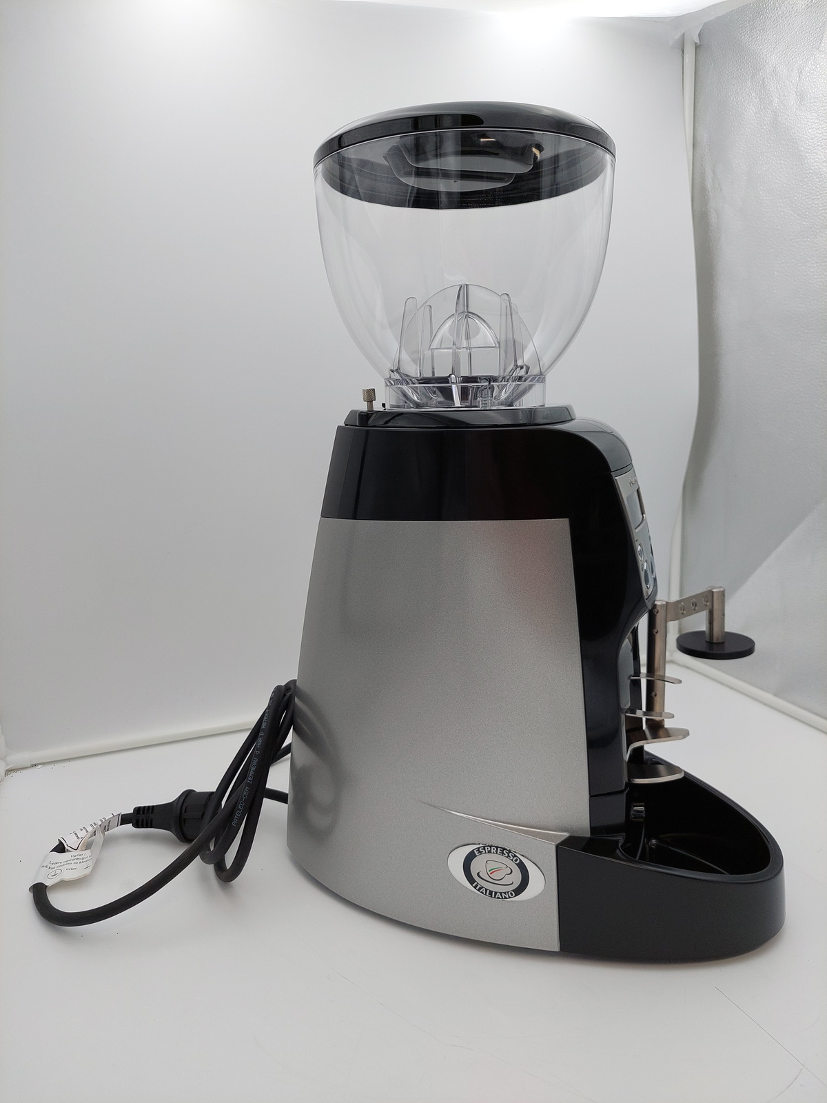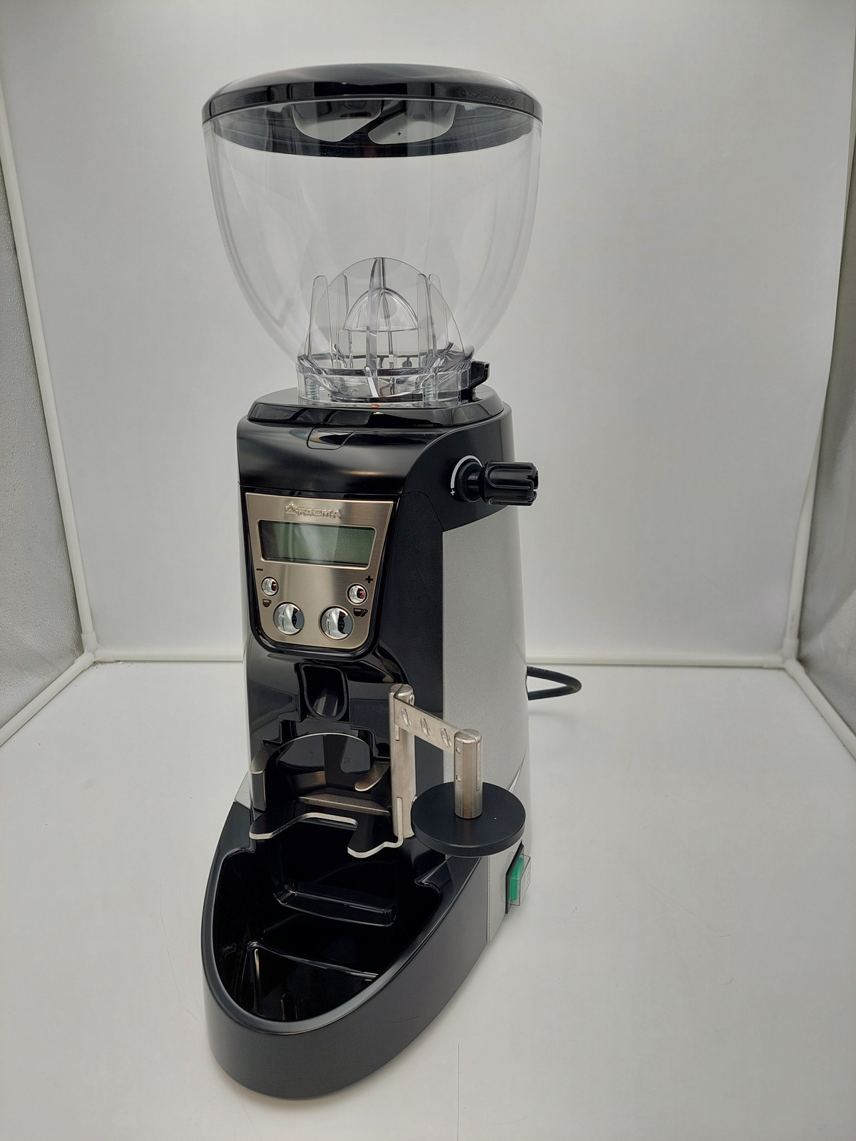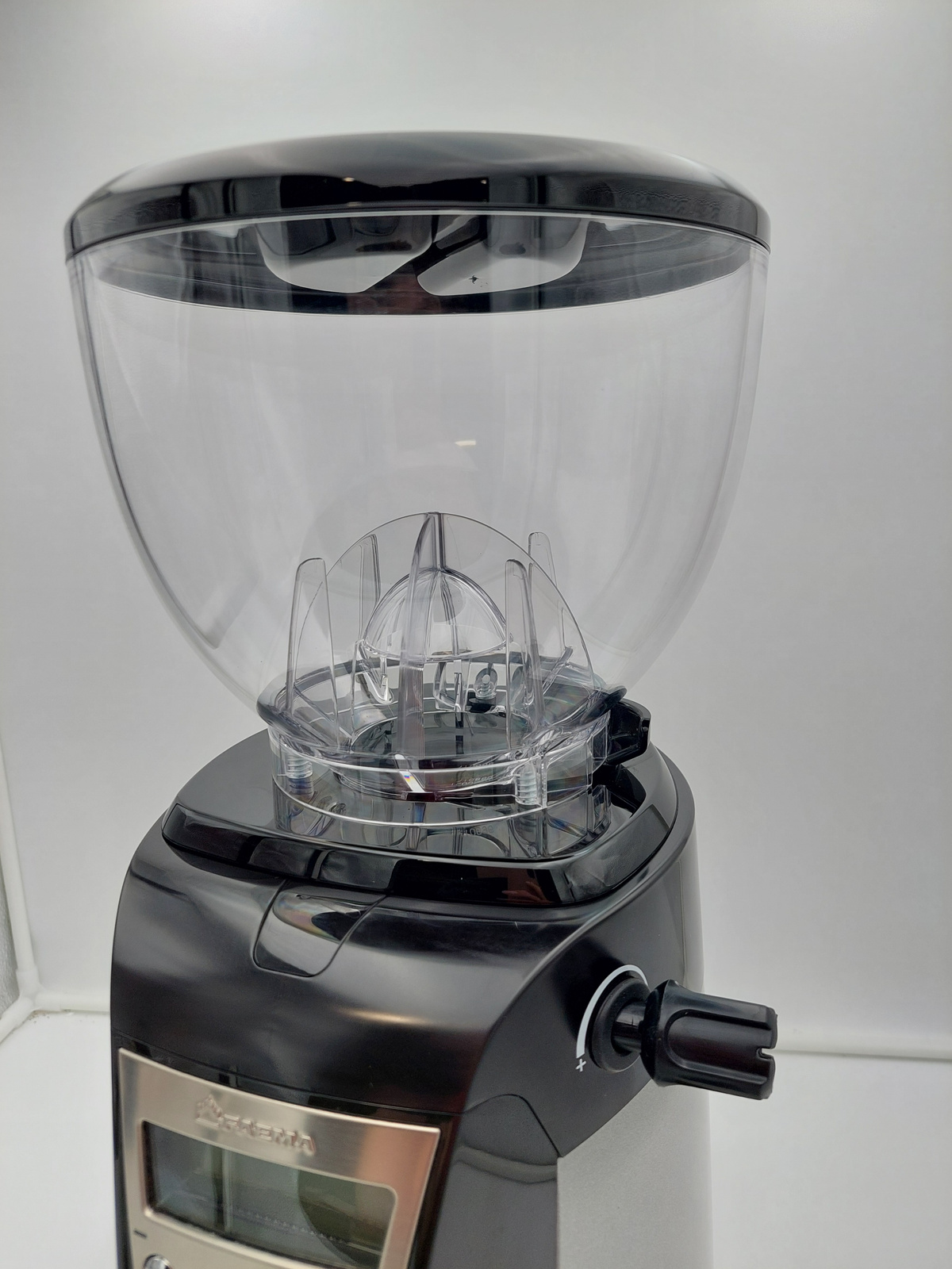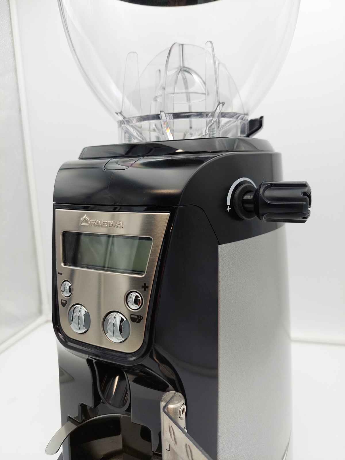 Młynek posiada delikatne rysy widoczne na zdjęciach na następujących elementach: pokrywa hoppera, górna część obudowy, dolny pojemnik na kawę.
